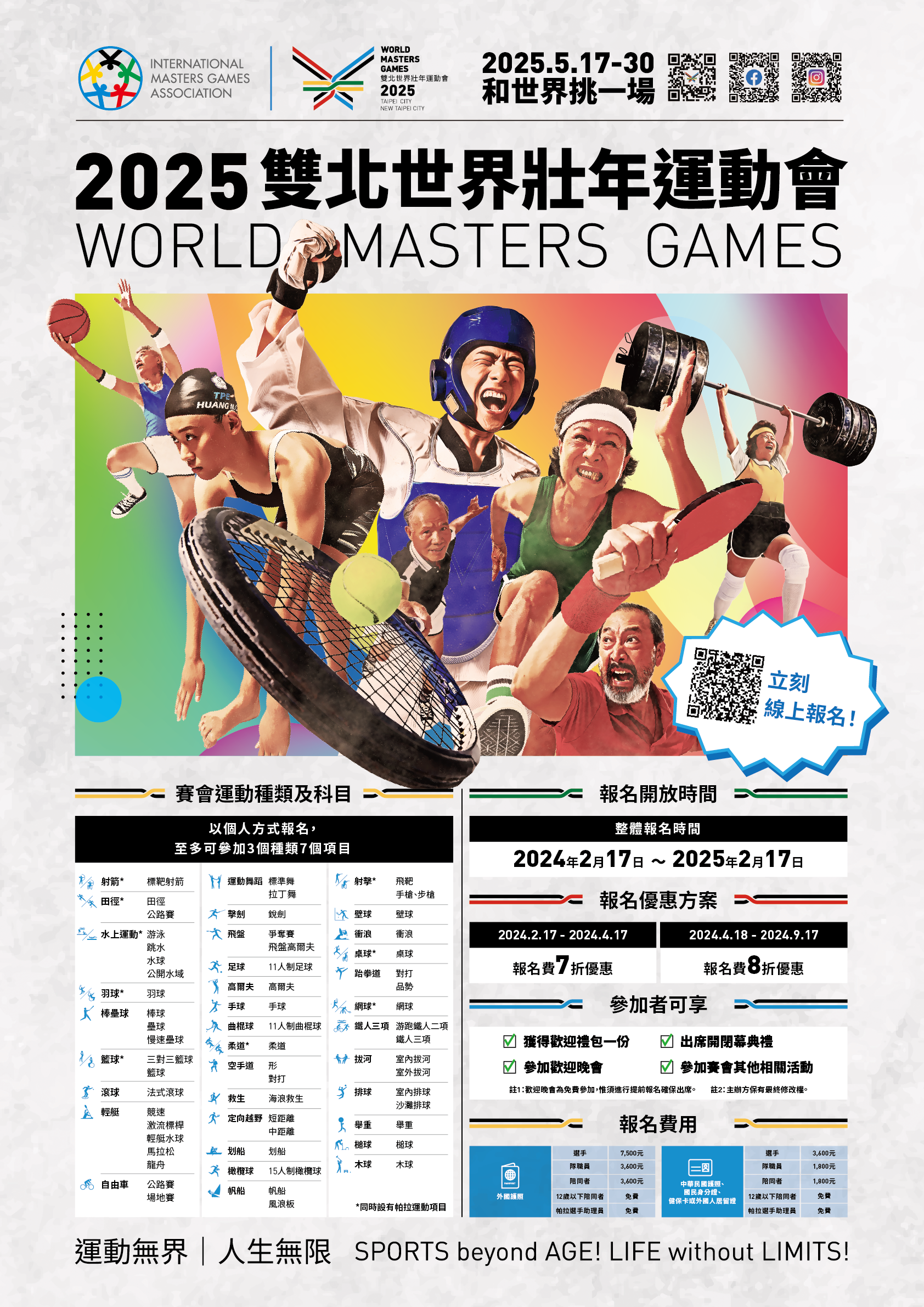 三、2025年雙北世壯運業於本(113)年2月17日開放選手報名參賽,報名期限至114年2月17日止。