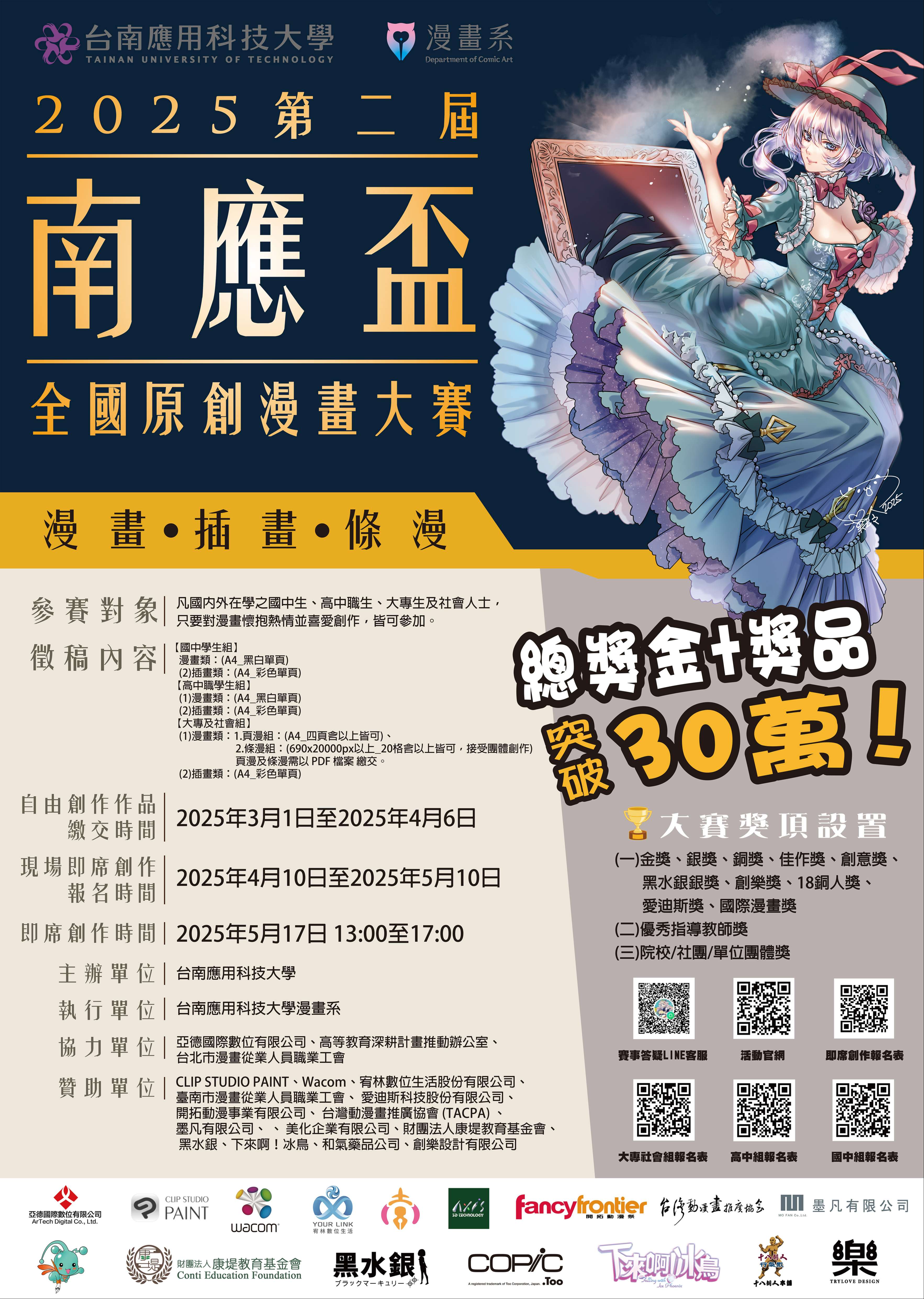 (三)大專社會組:漫畫組(頁漫組與條漫組)及插畫組。