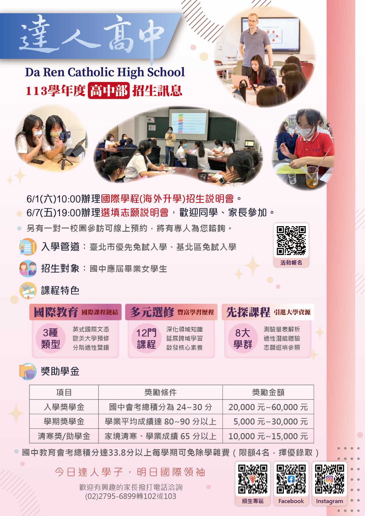 勵貴校女同學踴躍報名。如有相關問題諮詢請洽(02)2795-6899分機103。